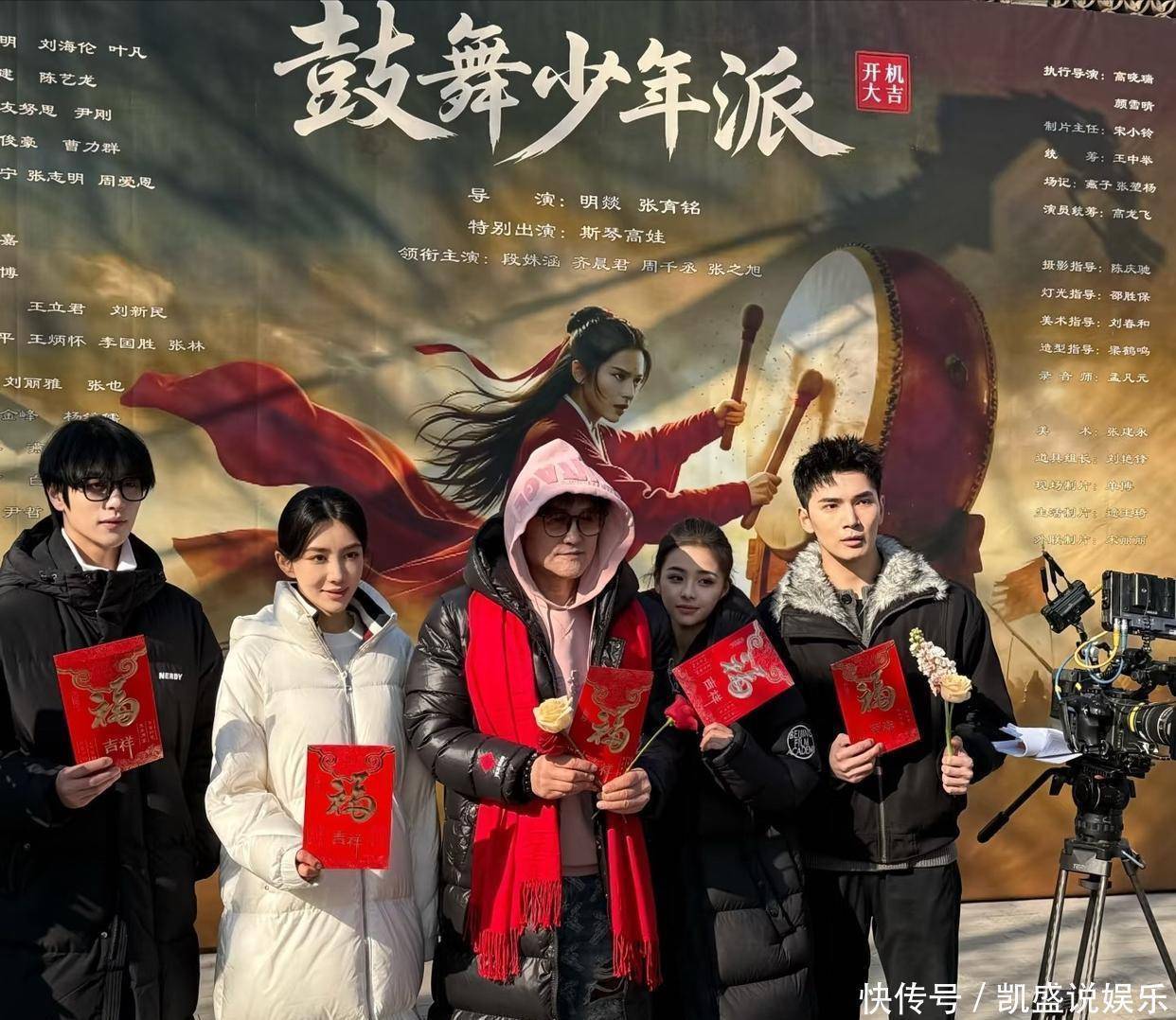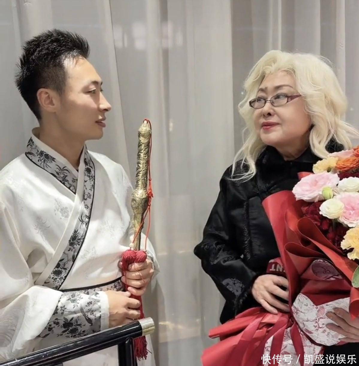 后来才知道,当天是斯琴高娃老师的生日!她正在拍《鼓舞少年派》,剧组特意给她办了生日宴。因为赶拍摄进度,她连妆都没卸就来庆生了。
